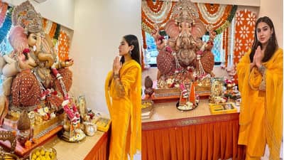 सारा अली खान अशा सेलिब्रिटींपैकी एक आहे जे गणेश चतुर्थीचा सण मोठ्या उत्साहात आणि थाटामाटात साजरा करतात. यंदाच्या वर्षी देखील अभिनेत्रीने गणरायाचं मोठ्या थाटात स्वागत केलं आहे.