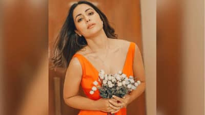 हिनाने तिच्या नव्या फोटोशूटचे फोटो सोशल मीडियावर शेअर केले आहेत. या फोटोमध्ये हिनाने केशरी रंगाचा शाॅर्ट ड्रेस घातल्याचे दिसत आहे.