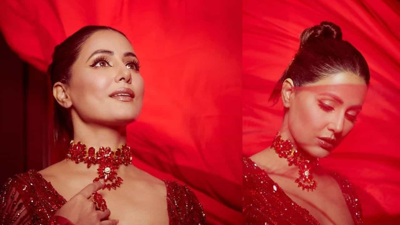 अभिनेत्री हीना खान मालिका विश्वातील अशा अभिनेत्रींपैकी एक आहे जी नेहमी आपल्या हॉट अंदाजानं चाहत्यांची मनं जिंकते. (Hina Khan's classy look in a red dress, see amazing photo)