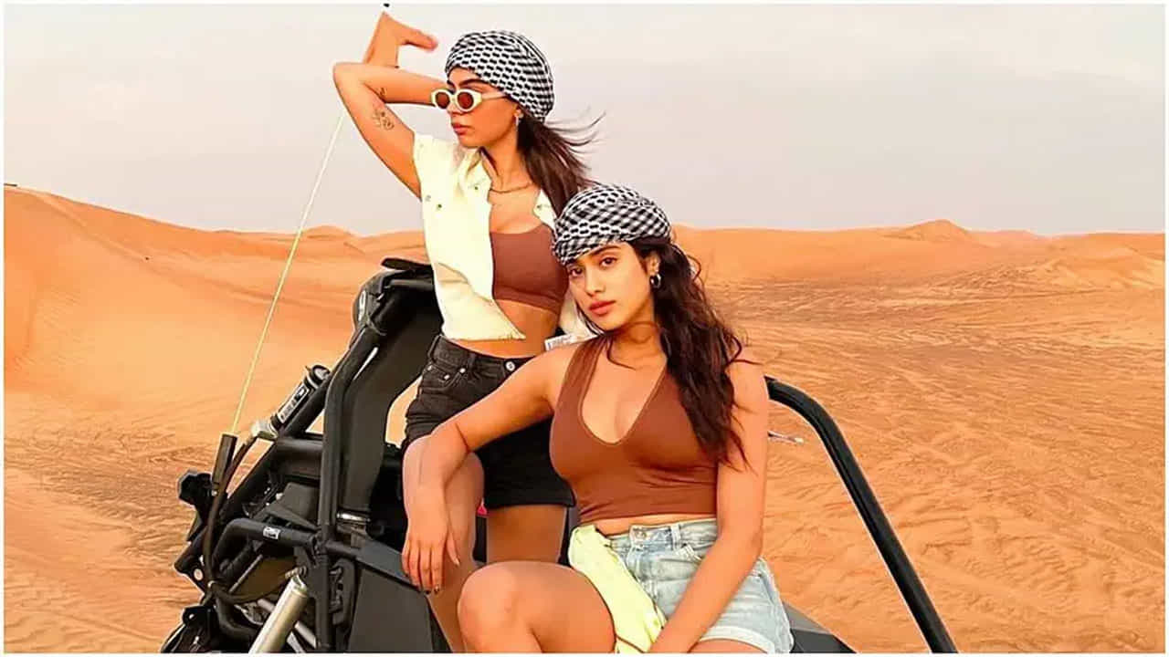 अभिनेत्री जान्हवी कपूर (Janhvi Kapoor) आणि तिची बहीण खुशी कपूर (Khushi kapoor) यांनी त्यांच्या काही फोटोंनी इंटरनेटवर धुमाकूळ घातला आहे. या नव्या फोटोंमध्ये दोन्ही बहिणी वाळवंटात बोल्ड स्टाईलमध्ये धमाल करताना दिसत आहेत. त्यांचे हे फोटोशूट पाहून चाहते देखील घायाळ झाले आहेत...