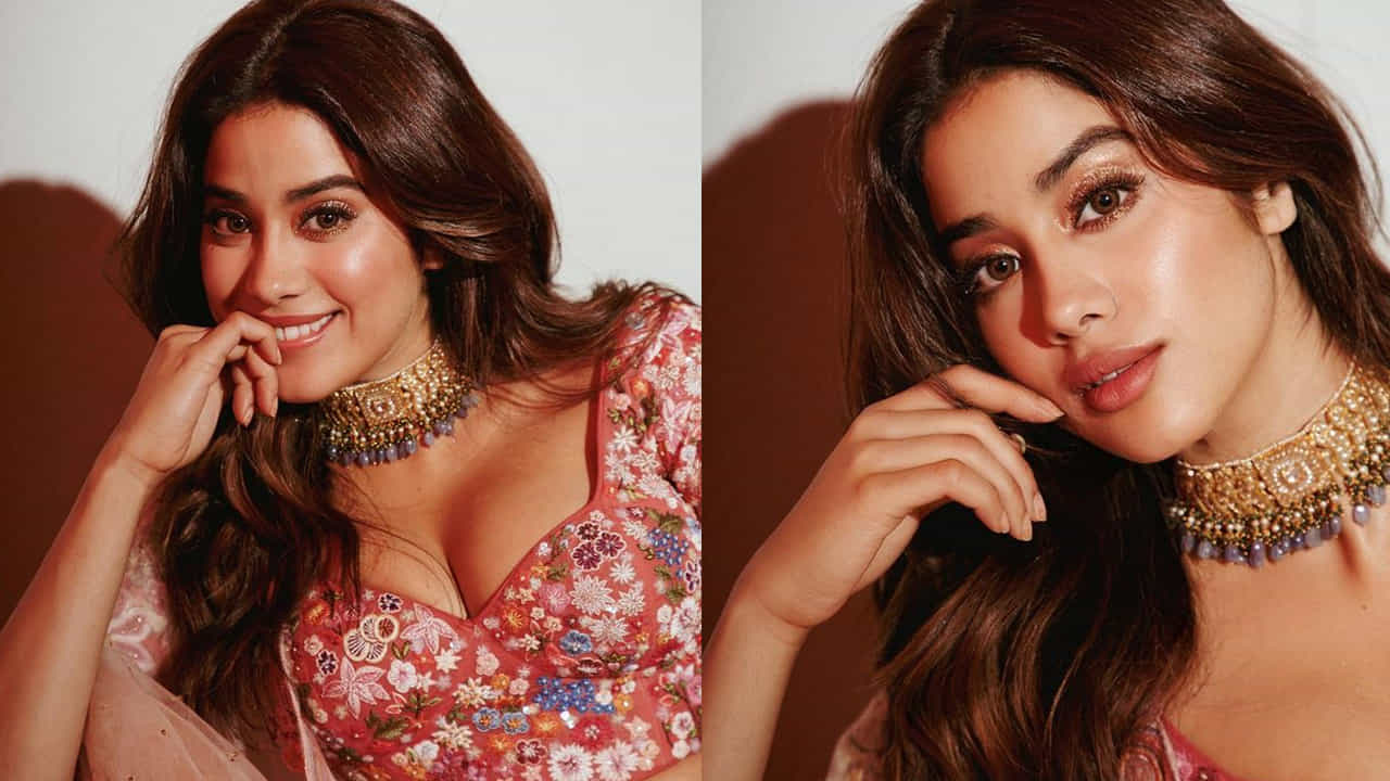 अबोली रंगाचा जरी वर्क असलेला लेहेंगा तिने या फोटोशूटमध्ये परिधान केला आहे. सोबत हलका ग्लो देणारा मेकअप आणि गोल्डन ज्वेलरीने जान्हवीने आपला हा लूक पूर्ण केला आहे.