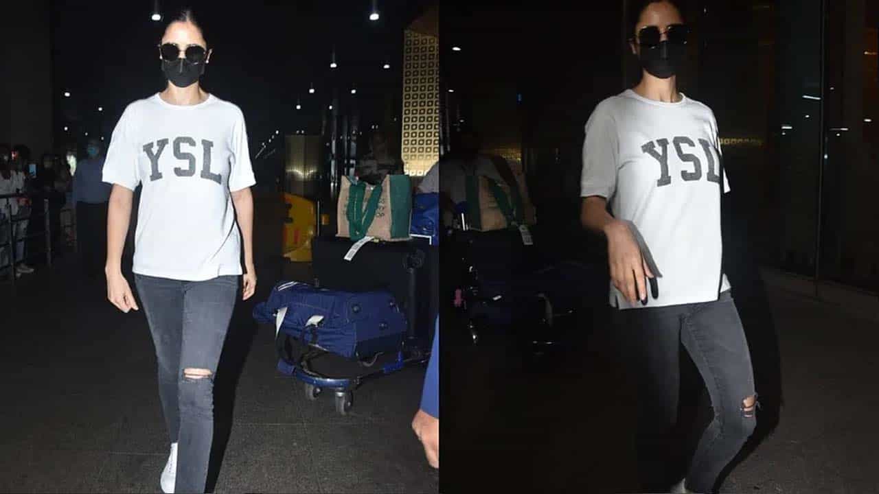 या दरम्यान, कतरिना हसत होती आणि कॅमेऱ्यांकडे पाहून हात दाखवत होती, तिने पांढरा टी-शर्ट आणि जीन्स घातली होती.