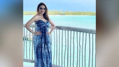 धकधक गर्ल माधुरी दीक्षितनं स्वतःचा एक फोटो शेअर केला आहे ज्यात ती ऑफ शोल्डर ब्लू आणि व्हाईट प्रिंटेड मॅक्सी ड्रेसमध्ये दिसत आहे.