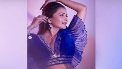 बॉलिवूडची धक धक गर्ल माधुरी दीक्षित पुन्हा एकदा निळ्या रंगाच्या लेहेंगामध्ये दिसली. या लेहेंगाची डिजाइन डिझायनर्स अबू जाननी आणि संदीप खोसला यांनी केली आहे.