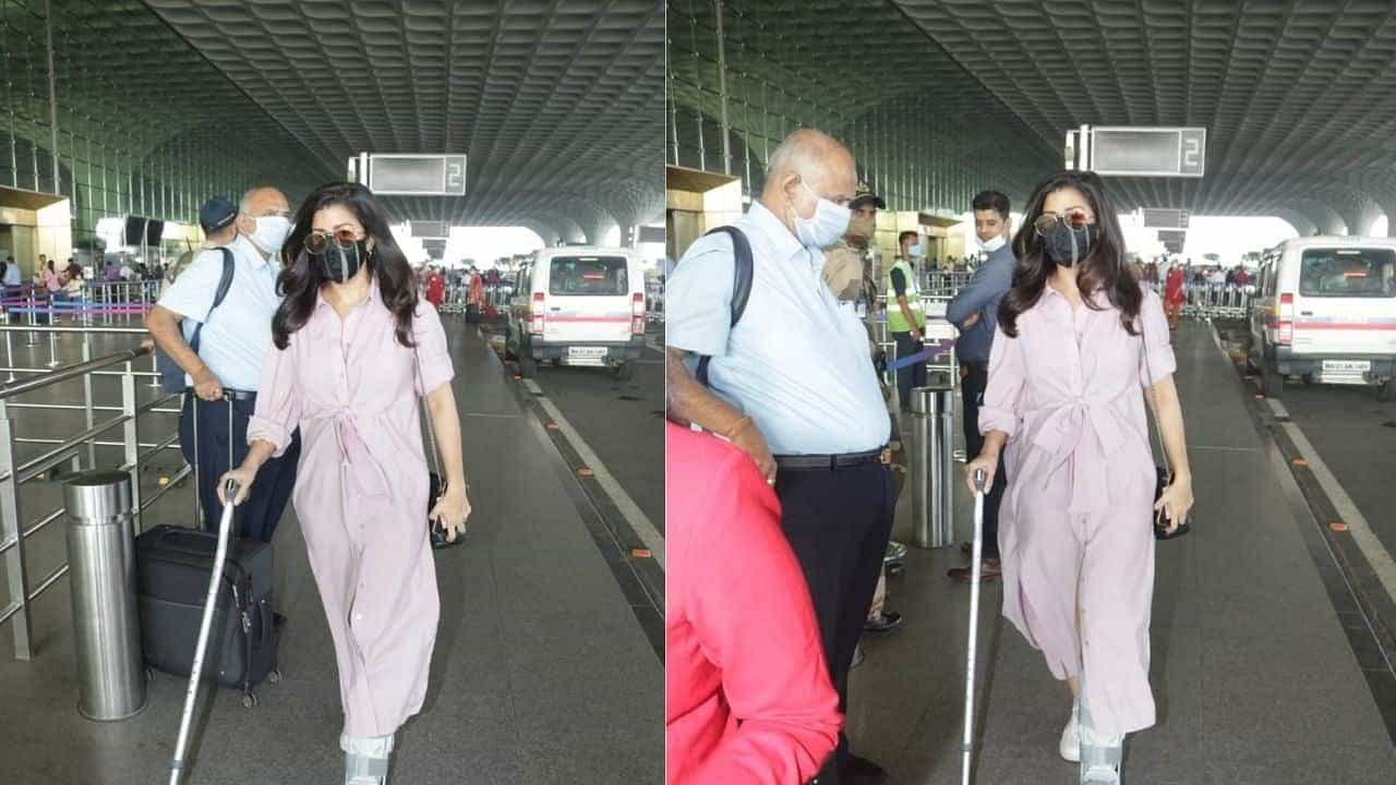 अभिनेत्री निम्रत कौरने पिंक कलरचा आउटफिट परिधान केला होता. तिच्या डाव्या पायाला दुखापत झाली असून ती काठीच्या साहाय्याने चालत होती.