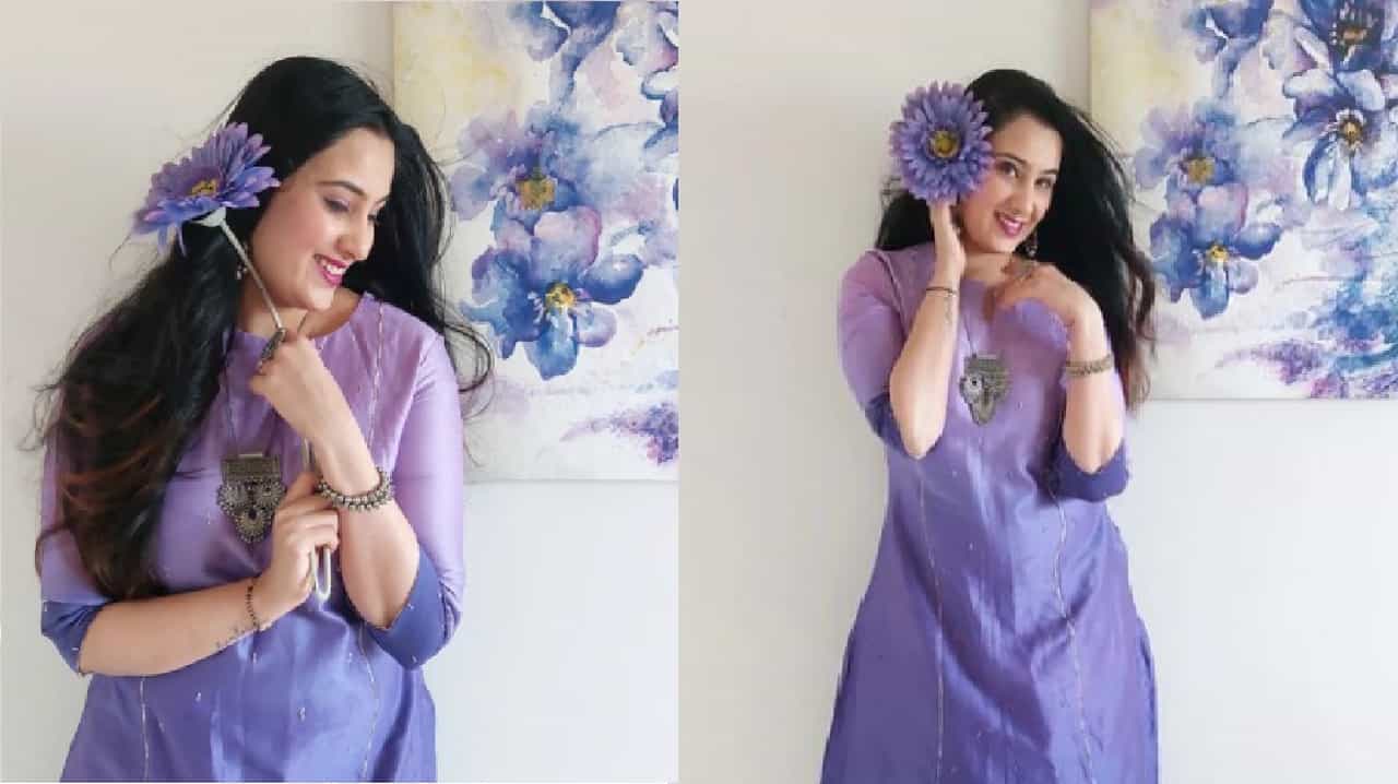 लॅव्हेंडर कलरच्या ड्रेसमधले फोटो तिने इन्स्टाग्रामवर शेअर केलेत. तिचे हे फोटो तिच्या चाहत्यांच्या पसंतीस उतरताना दिसत आहेत. यात तिच्या मागेची लॅव्हेंडर कलरचं चित्र पहायला मिळतंय.