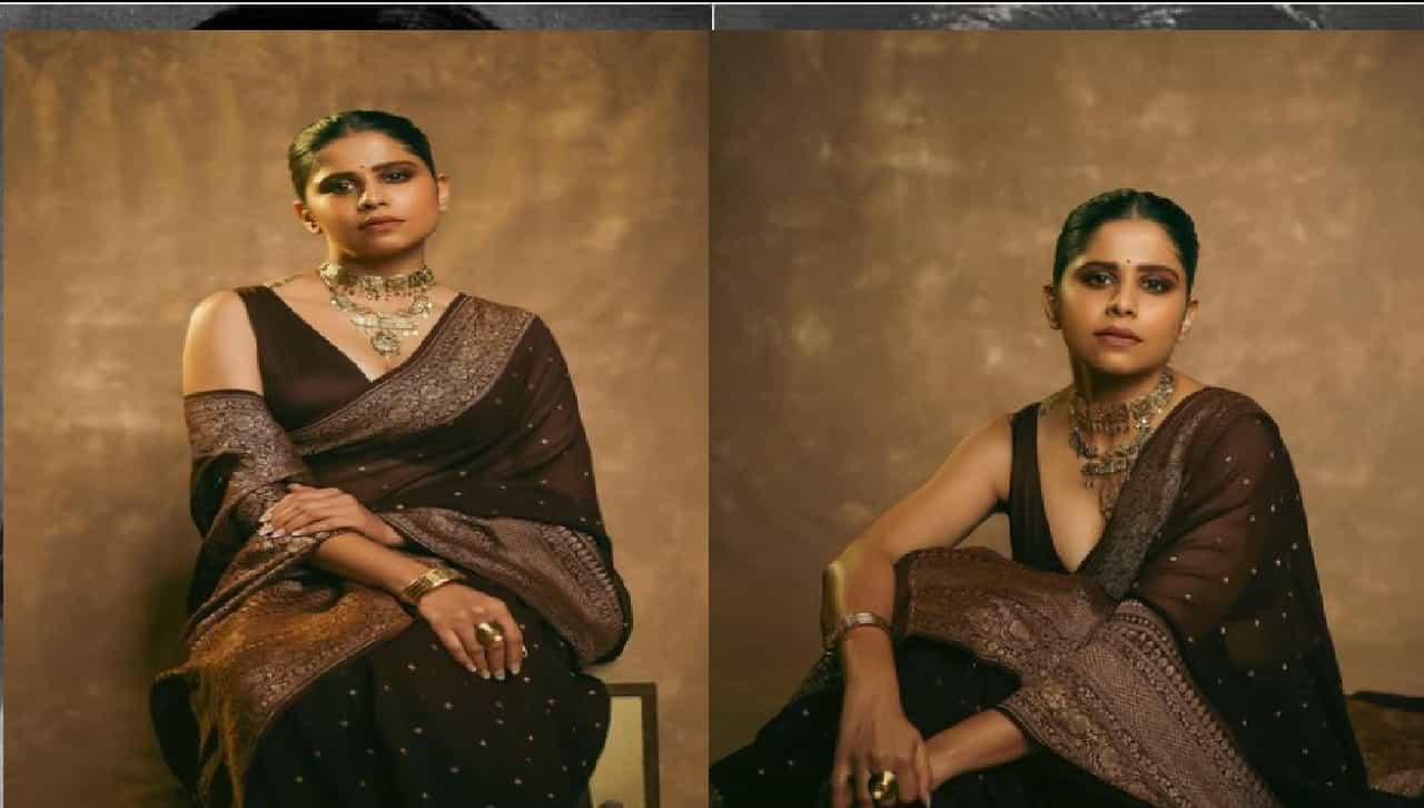 सईने चॉकलेटी रंगाची साडी नेसली आहे. या साडीवर बारीक नक्षी आहे आणि साडीला साजेशी ज्वेलरीही तिने घातली.
