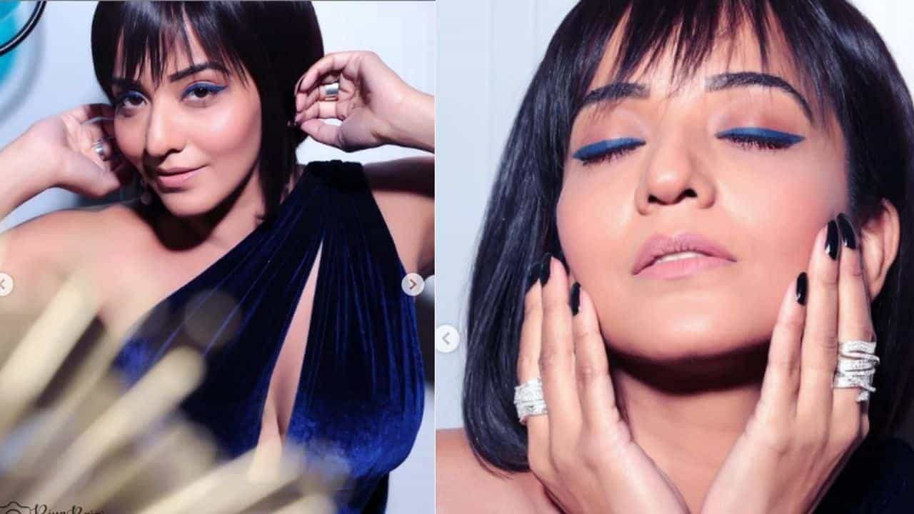 अभिनेत्रीने मखमली थाई स्लिट गाऊन घातला आहे जो बेकलेस आहे. तिच्या डोळ्यांना तिने स्मोकी लूक देऊन ग्लॅम मेकअप केला आहे.