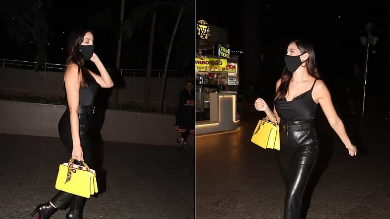 फोटोंमध्ये नोरा ब्लॅक कलरच्या आउटफिटमध्ये दिसत आहे. तिनं काळ्या रंगाची पँट आणि स्टायलिश टॉप परिधान केला होता. यासोबत तिनं पिवळ्या रंगाची बॅग कॅरी केली आहे.