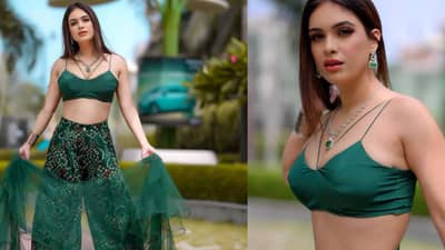 नेहा मलिकने नवीन फोटोशूटमध्ये हिरव्या रंगाचा ड्रेस कॅरी केला आहे. यामध्ये नेहाचा लूक जबरदस्त दिसतोयं. नेहा मलिक हिरवा दुपट्टा हातात घेऊन कॅमेराकडे पाहून पोज देते आहे.
