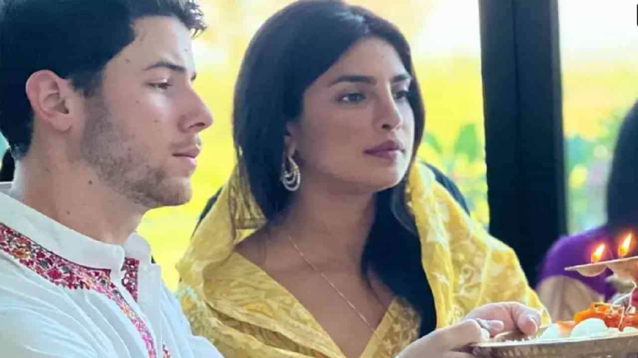 फोटोमध्ये निक देखील मोठ्या भक्तिभावाने पूजा करताना दिसत आहे. यादरम्यान प्रियांकाने पिवळ्या रंगाची साडी घातली होती आणि निकने पांढऱ्या रंगाचा कुर्ता घातलेला दिसत आहे.