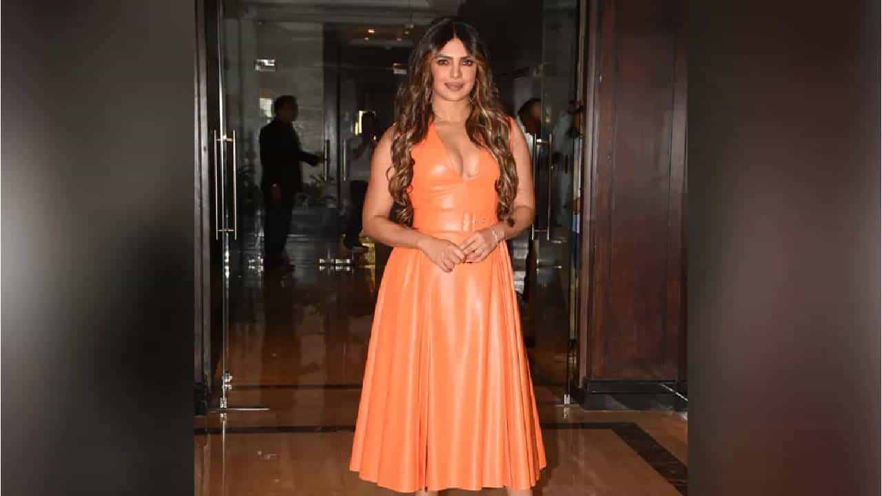 डीप नेक ऑरेंज फिट आणि फ्लेअर ड्रेसमध्ये प्रियांका खूपच सुंदर दिसत आहे. कॅमेऱ्याकडे पाहून यावेळी प्रियांकाने अनेक पोज देखील दिल्या.