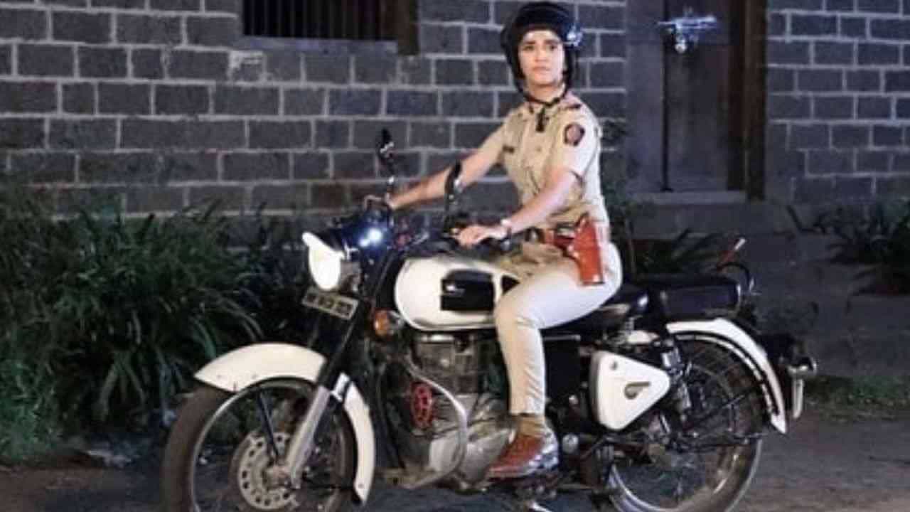 या फोटोत संजीवनीचा स्वॅग दिसतोय. ती पोलिसांच्या भूमिकेत मस्त बुलेटवर फिरताना दिसतेय.