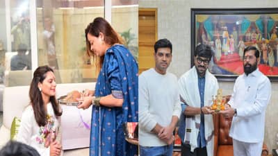 फोटोंमध्ये एकनाथ शिंदे राम चरणा याचे गुलगस्ता आणि शाल देऊन स्वागत करताना दिसत आहेत. एवढंच नाही तर, मुख्यमंत्री यांनी पाहुण्यांना गणपतीची मुर्ती देखील दिली. त्याचवेळी एकनाथ शिंदे यांच्या सुनेने उपासना कामिनेनी हिचं हिंदू पद्धतीत स्वागत केलं.