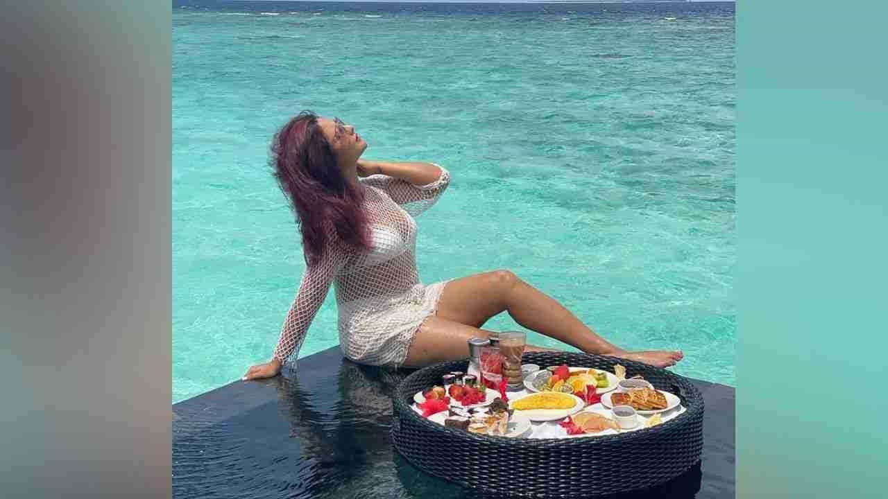 रश्मी देसाईने इन्फिनिटी पूलमध्ये नाश्ता करण्यापूर्वीचे हे फोटो शेअर केले आहेत. रश्मी देसाईचा जाळीदार ड्रेस चाहत्यांचे लक्ष वेधून घेत आहे.
