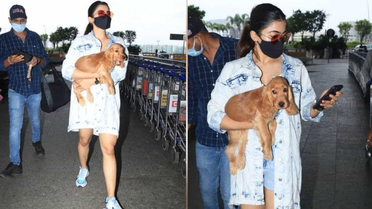 दाक्षिणात्य सुंदर अभिनेत्री रश्मिका मंदाना (Rashmika Mandanna) नुकतीच मुंबई विमानतळावर स्पॉट झाली होती. यावेळी अभिनेत्री तिच्या पाळीव कुत्र्यासोबत दिसली होती. अभिनेत्रीने तिच्या कुत्र्याला उचलून धरले होते. मुंबई विमानतळावरील अभिनेत्रीची सुंदर छायाचित्रे पाहा.