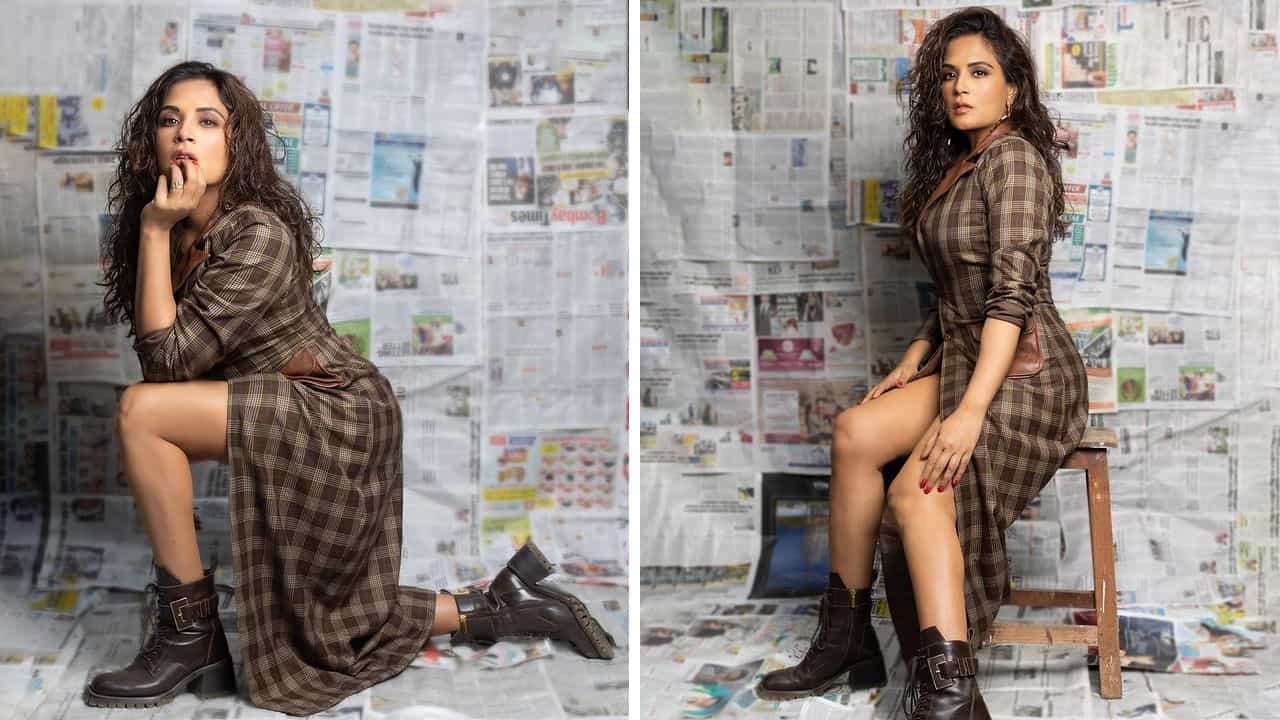 रिचाने बोल्ड चेक्ड लेदर ड्रेसमध्ये हा फोटोशूट केला असून, तिच्या फोटोंपेक्षा अधिक कॅप्शनचीच चर्चा होत आहे.