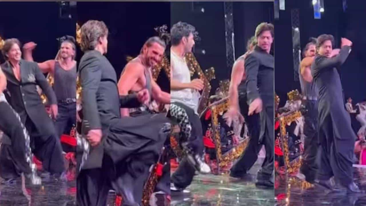 यामध्ये पठाण चित्रपटातील गाण्यावर शाहरुख खान हा जबरदस्त असा डान्स करताना दिसत आहे. विशेष म्हणजे शाहरुख खान याच्यासोबत रणवीर सिंह आणि वरूण धवन हे देखील डान्स करताना दिसत आहेत.