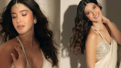 या फोटोंमध्ये शनाया ऑफ व्हाइट कलरची साडी नेसलेली दिसत आहे. यासोबत तिने मॅचिंग डीप नेक ब्लाउज पेअर केला आहे. ज्यामध्ये ती खूपच सुंदर दिसत आहे.