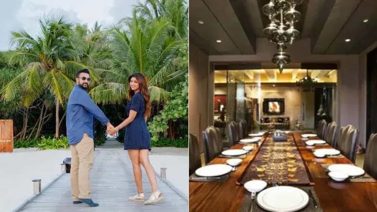 शिल्पा आणि राज यांच्या घरातील डायनिंग एरिया खूपच मोठा आहे. जथे सहज पार्टी आयोजित करता येऊ शकते. या डायनिंग एरियात बरेच लोक एकत्र बसून भोजन करू शकतात.
