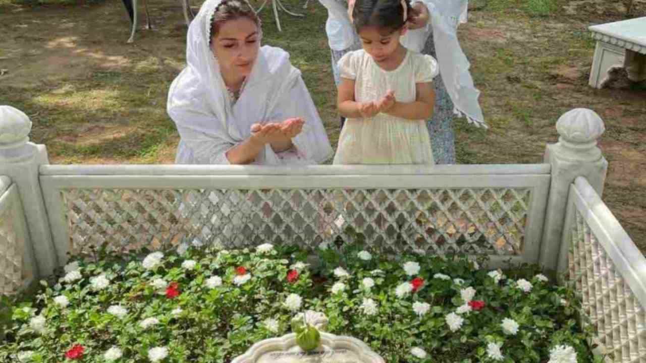 सोहा अली खानने आपली मुलगी इनायासोबत वडिलांच्या समाधीवर प्रार्थना केली. (Soha Ali Khan's prayers with her daughter at her father's grave, photo goes viral on social media)