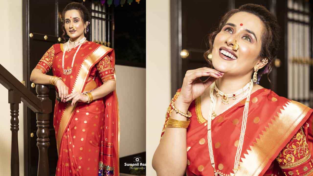 या खास निमित्ताने अभिनेत्री तेजस्विनी लोणारी हिने खास लाल रंगाच्या साडीत फोटोशूट केले आहे. हे सुंदर फोटो स्वप्नील रास्ते यांनी शूट केले आहेत. 'दोघात तिसरा आता सगळं विसरा' या चित्रपटात ती मकरंद अनासपुरेसोबत सोबत दिसली होती.