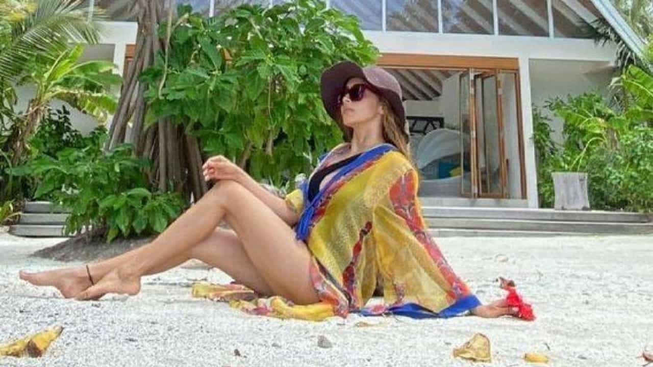 नुकतंच टीनानं शेअर केलेल्या फोटोत ती वाळूवर बसलेली आहे, यादरम्यान ती काळ्या रंगाच्या रंगात बिकिनीमध्ये दिसली आहे.