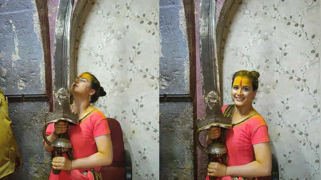 प्राजक्ताने खंडा तलवार उचलतानाचे फोटो तिच्या अधिकृत सोशल मीडिया अकाऊंटवर शेअर केले आहेत. तिच्या या फोटोंवर भरपूर लाईक्स आणि कमेंट्सचा वर्षाव होत आहे.