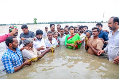 आंध्रात प्रदेश कॉंग्रेस अध्यक्ष वायएस शर्मिला यांनी पुरपरिस्थितीचा आढावा घेण्यासाठी आणि केंद्र सरकारचे लक्ष वेधण्यासाठी कंबरेपर्यंतच्या पाण्यात उतरुन पश्चिम गोदावरी जिल्ह्यातील ताडेपल्ली ग्रामीण मंडळातील नंदमुर गावात पुराने नष्ट झालेल्या शेतीची पाहणी केली.