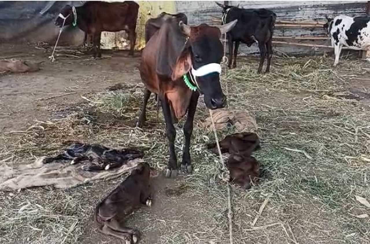 PHOTO | आश्चर्य! धुळ्यात गायीने दिला चार वासरांना जन्म; दुर्मिळ घटनेमुळे बघ्यांची गर्दी