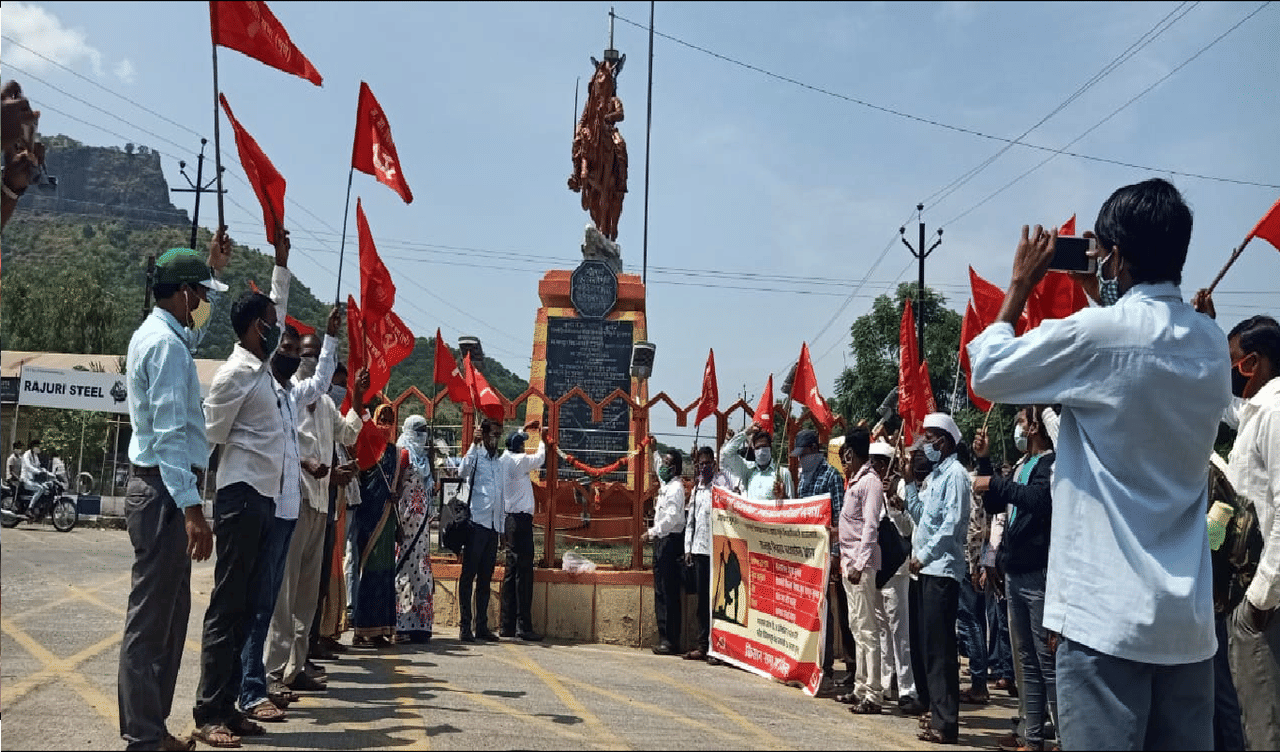 हातात लाल बावटा, डोक्यावर गाठोड घेऊन मजूर स्त्रिया आणि पुरुषांची ही पदयात्रा सुरू झाली आहे.