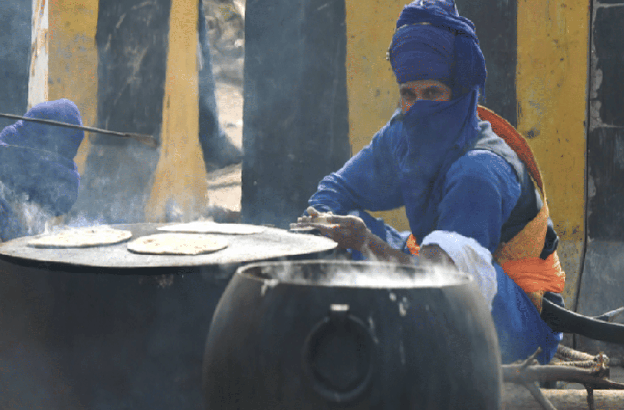 सिंधू बॉर्डरवर सुरु असलेल्या 'दिल्ली चलो' आंदोलनात सहभागी असलेल्या शेतकऱ्यांसाठी अशा प्रकारे स्वयंपाक तयार केला जात आहे.