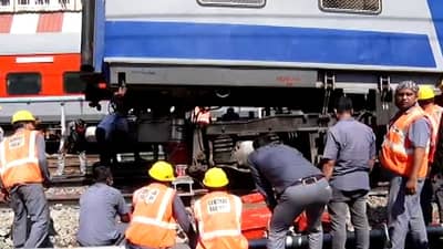 Photo Gallery | पुण्यात रेल्वे स्थानकावर शंटींग करताना डेमू रेल्वेरुळावरून घसरली ; जीवितहानी नाही