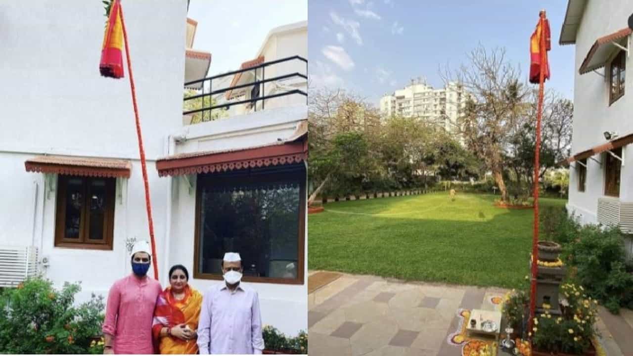 उपमुख्यमंत्री अजित पवार यांनी मुंबईतील देवगिरी निवासस्थानी सहकुटुंब गुढी उभारली