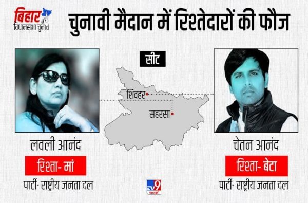 बिहार विधानसभा निवडणुकीत बाहुबलींसोबतच घराणेशाहीचाही जोर पाहायला मिळतोय. जवळपास सर्वच पक्षांमध्ये घराणेशाहीचा प्रभाव दिसतोय. हे नातेवाईक या ना त्या पक्षाकडून उमेदवारी मिळवून निवडणूक रिंगणात आहेत. काही ठिकाणी तर हे नातेवाईक एकमेकांच्या विरुद्ध असल्याचंही दिसतंय.
