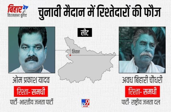 - सिवान मतदारसंघात लढत वेगळी असणार आहे. या मतदारसंघातून भाजपने ओम प्रकाश यादव यांना तिकिट दिलंय, तर राजदने अवध बिहारी चौधरी यांना तिकिट दिलंय. दोघे एकमेकांचे साडू आहेत.