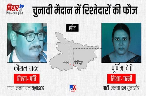 - जनता दल युनायटेडने यावेळी एका जोडप्यालाच तिकिट दिलंय. कौशल यादव जेडीयूच्या तिकिटावर नवादा येथून तर त्यांची पत्नी पूर्णिमा देवी गोविंदपूर मतदारसंघातून निवडणूक मैदानात आहेत.