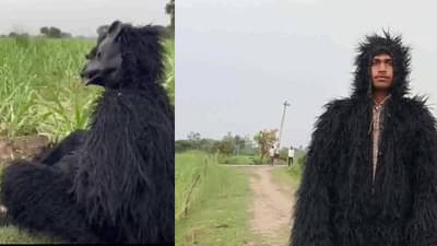 Marathi News Photo gallery Farmers in Lakhimpur Kheri's Jahan Nagar village use a bear costume to prevent monkeys from damaging their sugarcane crop