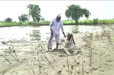 पाण्यात भिजल्यामुळे कपाशीच्या पिकाची झालेली ही अवस्था.