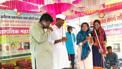 मोबदल्या अभावी काय हाल: प्रकल्पग्रस्त शेतकऱ्यांना हक्काच्या शेतजमिनीचा अजूनही मोबदला मिळालेला नाही. त्यामुळे उपसामारीचे वेळ आल्याचे हे पथनाट्यातून सांगण्यात आले आहे. कृषीप्रधान देशात शेतकऱ्यांचे हाल काय याचे दर्शन या पटनाट्यातून घडवून आणण्यात आले आहे.