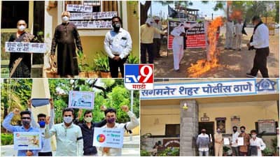 नाशिकमध्ये राष्ट्र सेवा दल, छात्रभारती विद्यार्थी संघटनेच्या कार्यकर्त्यांनी कोरोनाचे नियम पाळून निषेध नोंदवला.