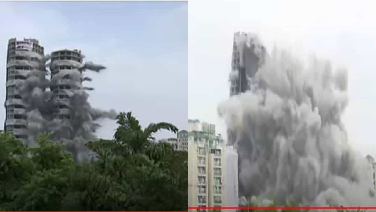 आज अडीच वाजता नोएडाचा ट्विन टॉवर पाडण्यात आला . अवघ्या नऊ ते 12 सेकंदात, 32 आणि 29 मजली इमारती जमीन दोस्त करण्यात आल्या . यावेळी अनेक किलोमीटर अंतरावरून धुळीचे लोट निर्माण झाले