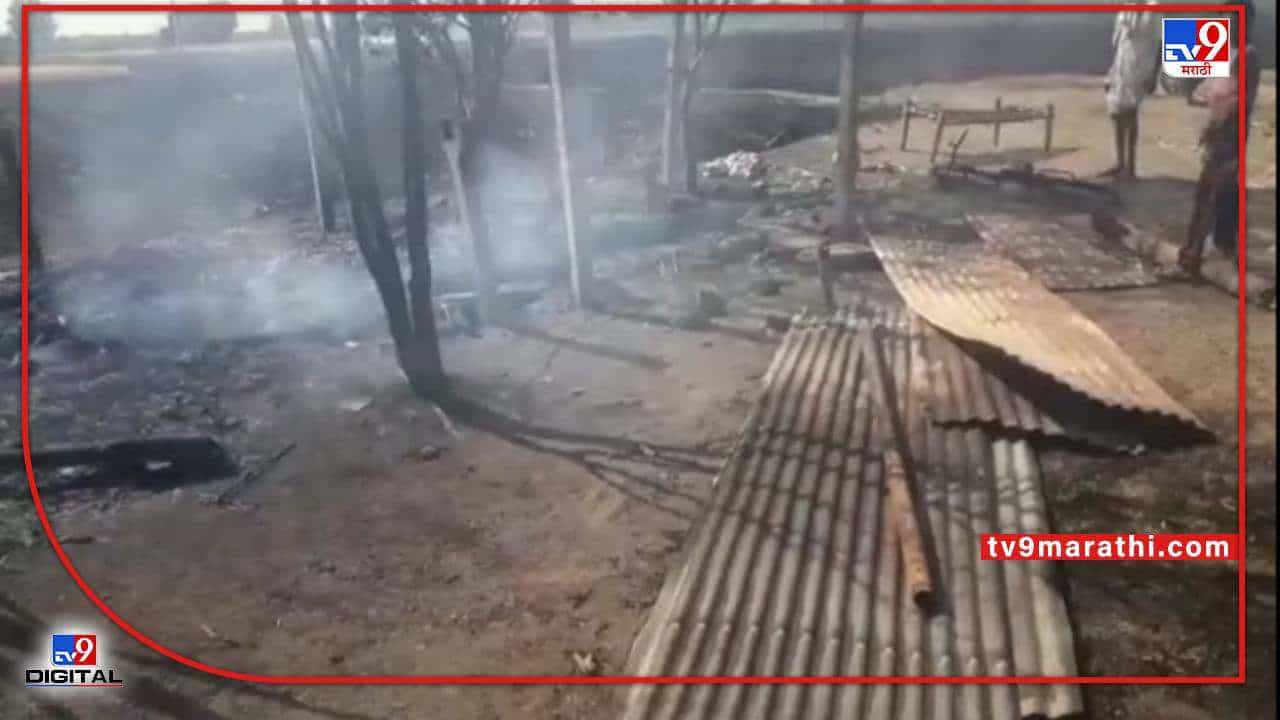 नांदेड : सध्याच्या उन्हाच्या झळा ह्या असह्य आहेत. मात्र,अशाच वाढत्या उन्हामध्ये आगीचे लोट अंगावर आले तर याची कल्पनाही करु वाटत नाही. पण अगोदरच निसर्गाच्या लहरीपणामुळे त्रस्त असलेल्या शेतकऱ्याच्या नशिबी अशा घटना घडत आहेत. आतापर्यंत शॉर्टसर्किटमुळे ऊस जळाल्याच्या घटना घडत होत्या पण जिल्ह्यातील अर्धापूर तालुक्यातील सांगवी शिवारात शेतकरी कामाजी जाधव यांच्या गोठ्याला आग लागल्याची घटना घडली आहे. यामध्ये शेती साहित्याची होळी तर झालीच शिवाय गोठ्यातील मुकी जनावरेही भाजली आहेत.