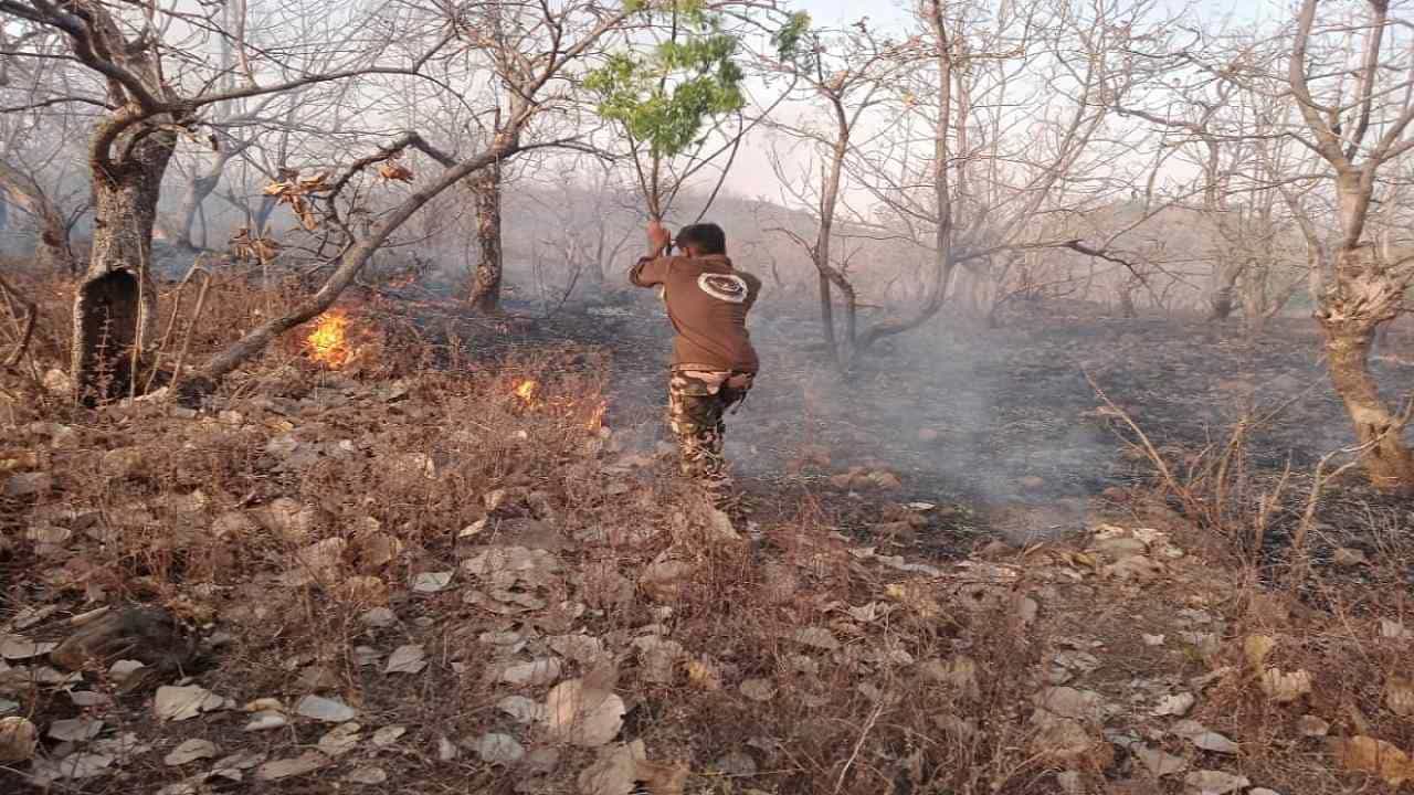 आज दुपारी तीन वाजता आग लागली. वन विभागाचे अधिकारी नव्हते. शेजारी शिबिरात विद्यार्थी होते. ते शेततळ्यांचं खोदकाम करत होते. त्यांनी ही आग विझवली.