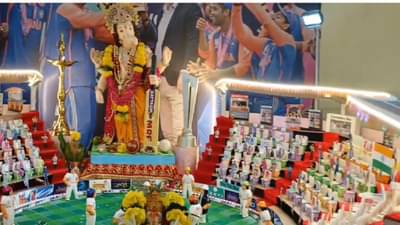 स्टेडियममध्ये भारत आणि न्यूझीलंडची मॅच सुरू असल्याचा देखावा त्यांनी तयार केला आहे. अतिशय भव्य अशा या देखाव्यात गणपती बाप्पा हातामध्ये बॅट घेऊन उभे आहेत. त्यामुळे हा देखावा पाटील कुटुंबीयांच्या घरी येणाऱ्या प्रत्येक भाविकाचं लक्ष वेधून घेत आहे.