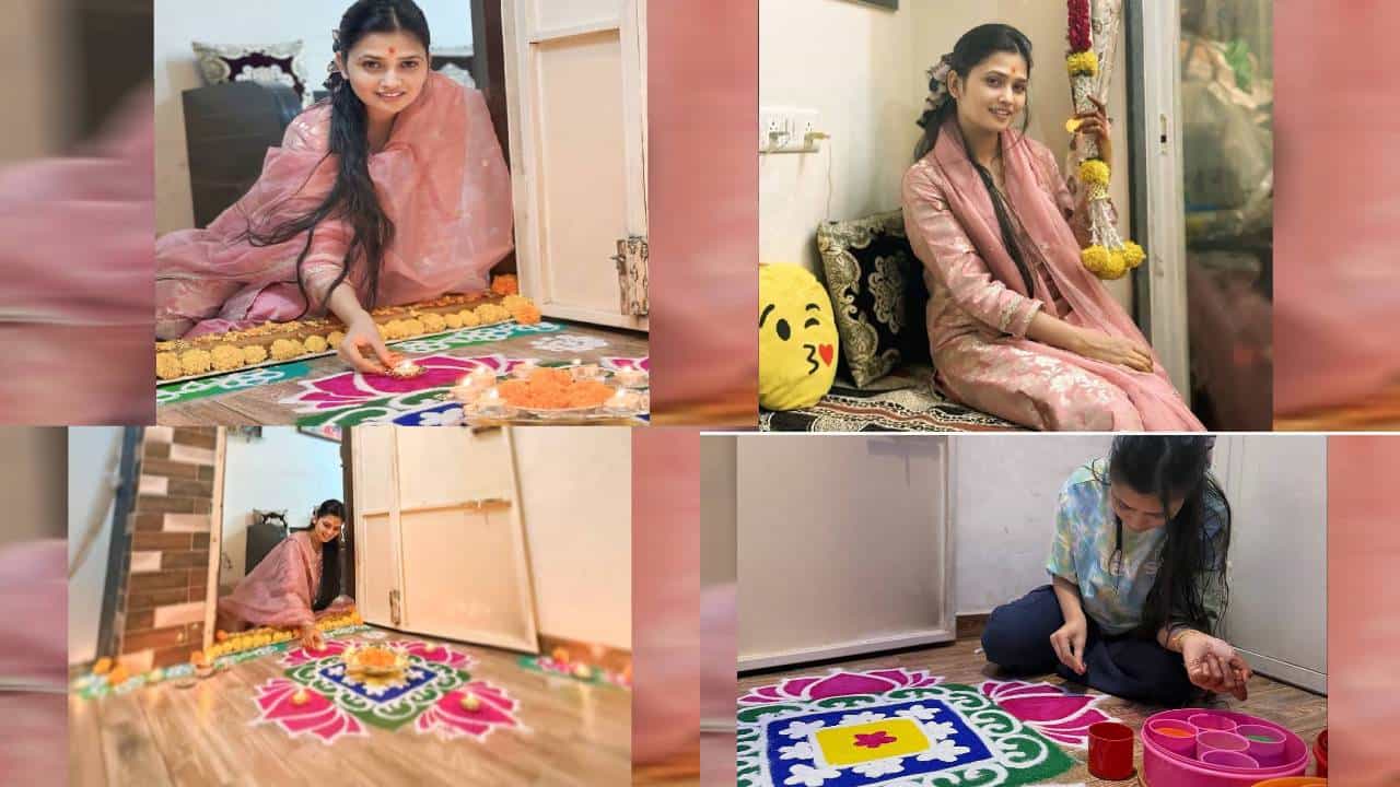 एवढंच नव्हे तिने घराबाहेर छान रांगोळी काढून, त्यात मनमोहक रंगही भरले. तिचं हे वेगळं रूप चाहत्यांना खूप आवडलं.