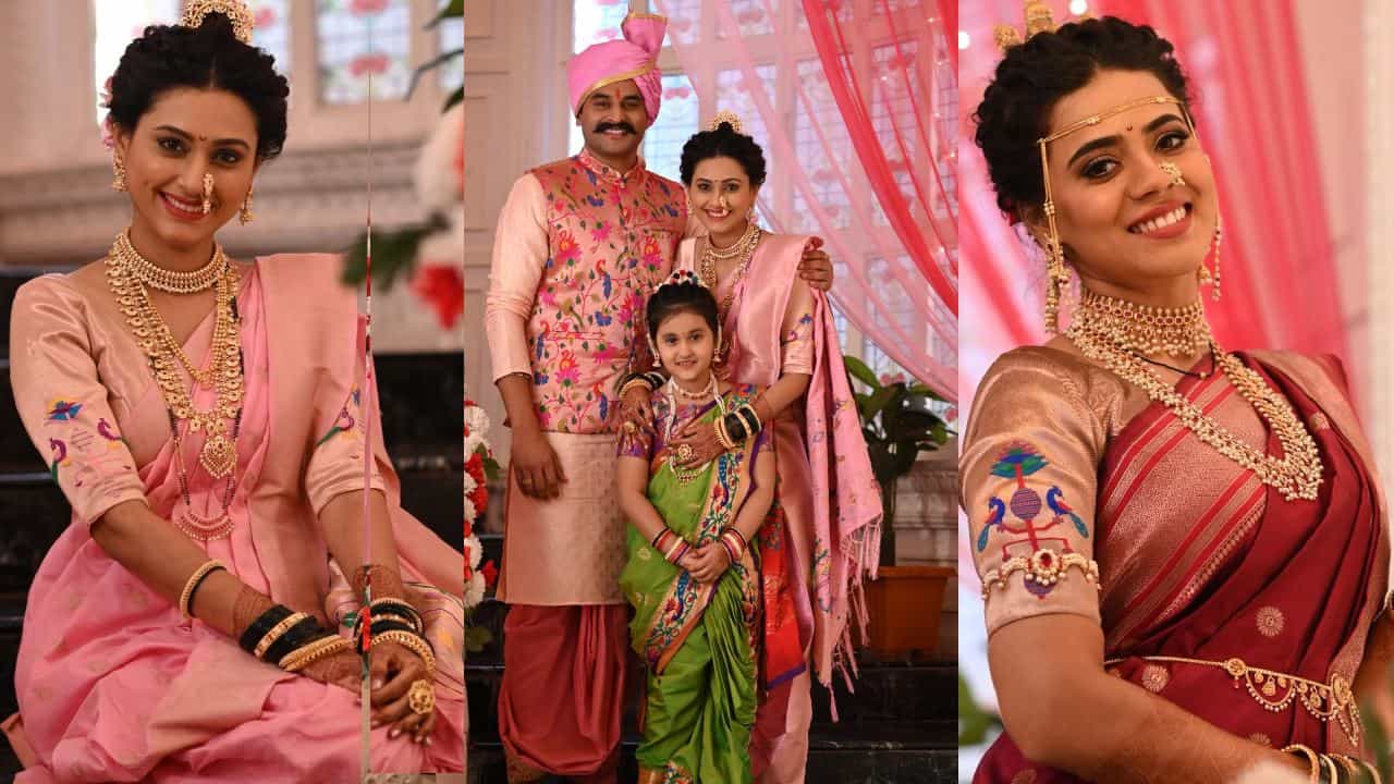 लग्नात पैठणीची थीम असल्यामुळे संपूर्ण कुटुंब पैठणीच्या रंगात न्हाऊन निघालं आहे. ऐश्वर्या आणि जानकीने नऊवारी साडी आणि पारंपरिक मोत्यांच्या दागिन्यांना पसंती दिलीय. तर तिकडे ऋषिकेशचं पैठणी जॅकेट सर्वांचं लक्ष वेधून घेत होतं.