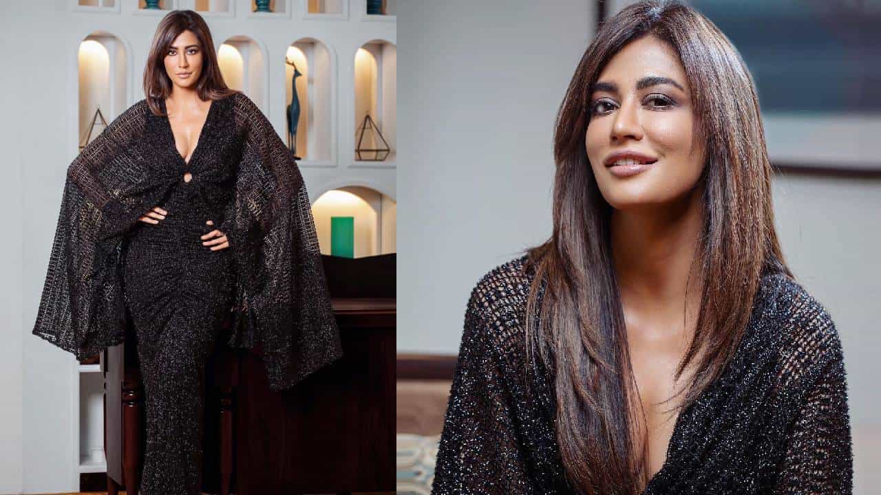 यालेटेस्ट फोटोमध्ये चित्रांगदाने काळ्या रंगाचा नेटेड गिल्ट गाउन परिधान केला आहे.