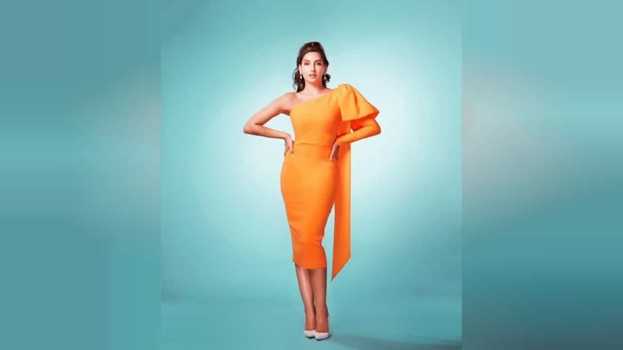 फोटोंमध्ये नोरा ऑरेंज कलरच्या ड्रेसमध्ये दिसली आहे.