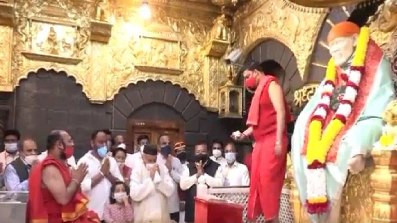 शिर्डी : राज्यपाल भगतसिंह कोश्यारी यांनी साई दरबारी दाखल होत, साईबाबाचे दर्शन घेतले आहे. राज्यपालांनी साईंची पाद्यपुजा केल्यानंतर शिर्डी माझे पंढरपूर ही छोटी आरती केली आणि समाधीचे दर्शन घेतले.